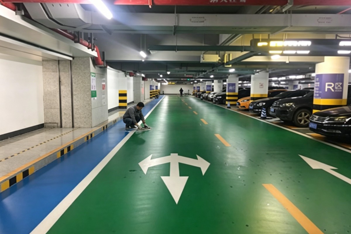 沈阳东陵桃仙街道停车场车库聚氨酯地坪施工厂家